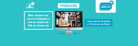 Lire l'Article Actualités Prochain webinaire : Bien choisir une oeuvre intégrale à lire au niveau A1 en classe de FLE 23/09/2025Jade Davin Lire l'Article